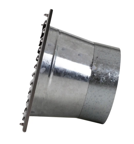 Das Lüftungsgitter für die Außenwand kann schnell, sauber und einfach an Gebäuden montiert werden. An den Stutzen kann ein Flexrohr angeschlossen werden.