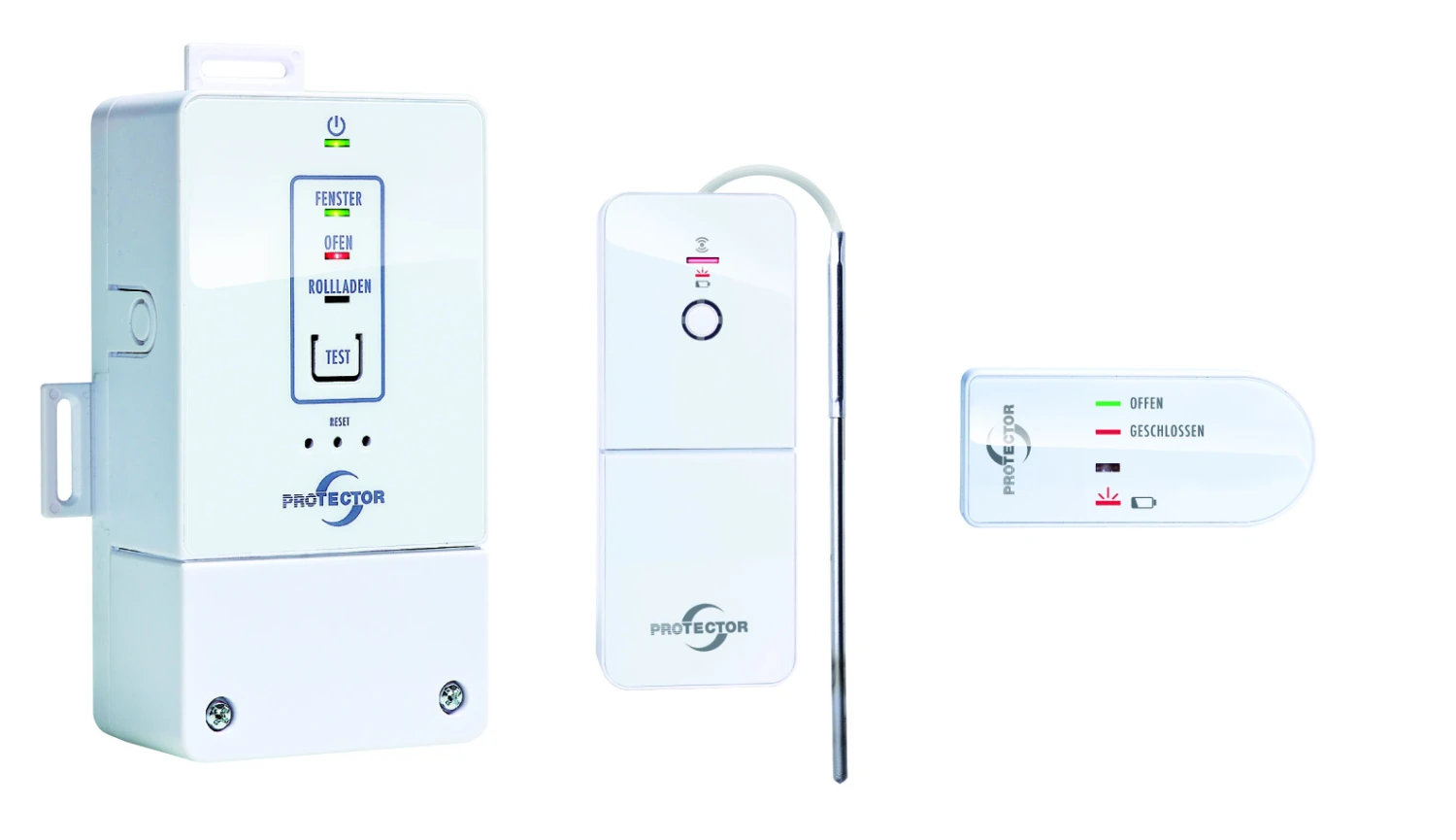 - inkl. Funk-Sender für Fenster und Kabelsensor 2,0 m für Ofenrohr