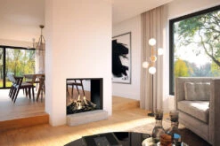 Ob Sie einen Raumteiler suchen, um zwei Räume stilvoll voneinander zu trennen, oder einfach die romantische Atmosphäre eines Kamins aus verschiedenen Winkeln Ihrer Wohnung erleben möchten – dieser Kamin ist die perfekte Lösung. Mit seiner Feuerraum Einsicht über drei Seiten können Sie die Faszination des flackernden Feuers aus verschiedenen Blickwinkeln genießen und die Wärme in Ihrem Zuhause optimal verteilen. Besonders in L-förmigen Wohnzimmern oder in Ecken entfaltet dieser Kamin seine volle Pracht.