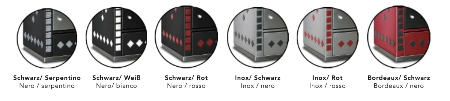 - eine Feuerraumtür mit dreifach verglastem Sichtfenster (nur mit Edelstahlfront) ist gegen Aufpreis erhältlich