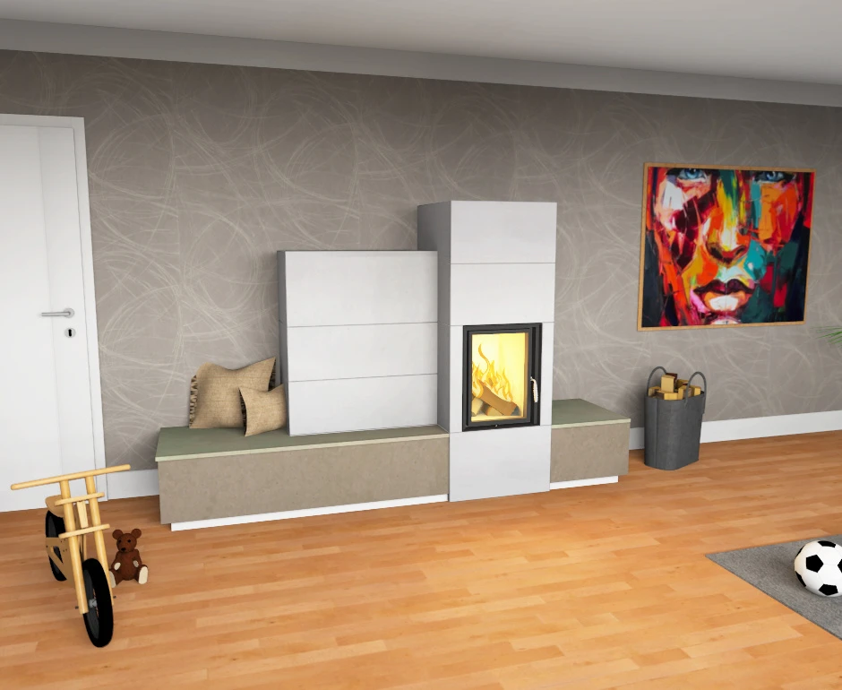 Mit einem Speicherofen BSO 03 von Brunner steigern Sie Ihre Wohnqualität! Der Systemofen bereichert Ihr Zuhause mit einem stimmungsvollen Flammenambiente, das zum Wohlfühlen und Abschalten ermuntert. Die Oberflächenoptik kann ganz nach Belieben verfeinert werden. Mit Putz, Farbe oder Kacheln lässt sich Ihre Ofenanlage individuell verzieren.