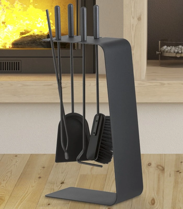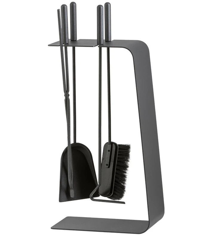 Kamingarnitur von Heibi mit edlem Besteckständer in graphitgrau
