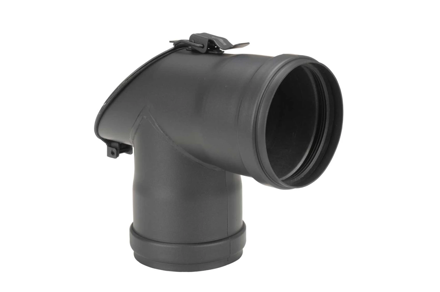 Das T-Stück mit Putztür eignet sich vor allem bei engen Reinigungsverhältnissen und ermöglicht durch die im 45° Winkel angebrachte Reinigungsöffnung einen geraden Blick in das Rohr.